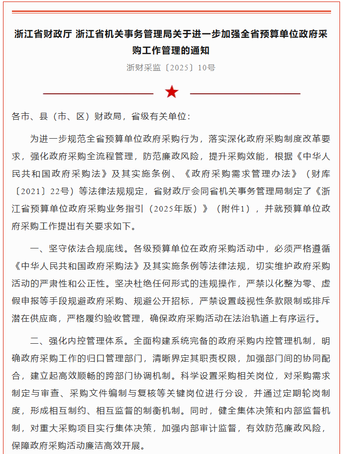浙江两部门联合发文:进一步加强全省预算单位政府采购工作管理(附政策解读)
